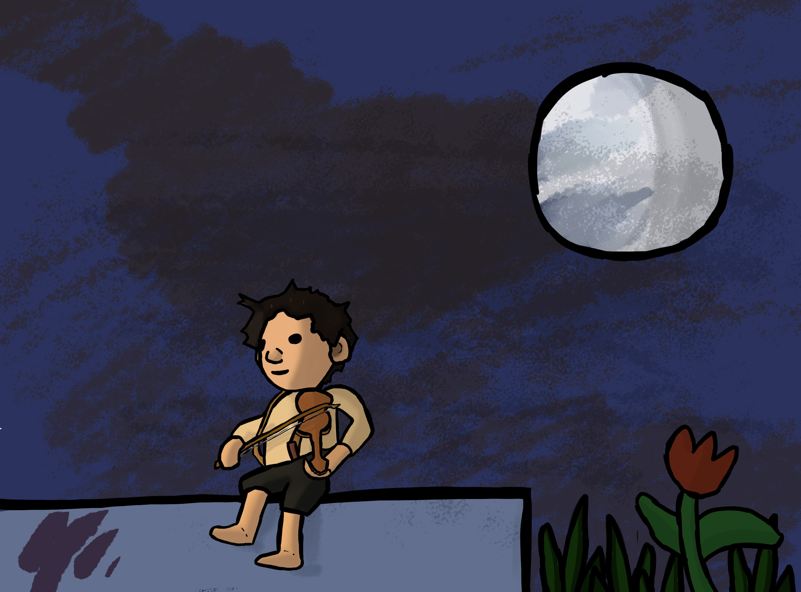 In dieser Not schenkt ihm sein bester Freund der Vogel eine Geige, die ihn zaubern lässt. Mit seiner Zauberfiedel lässt er Dinge grösser und kleiner werden.